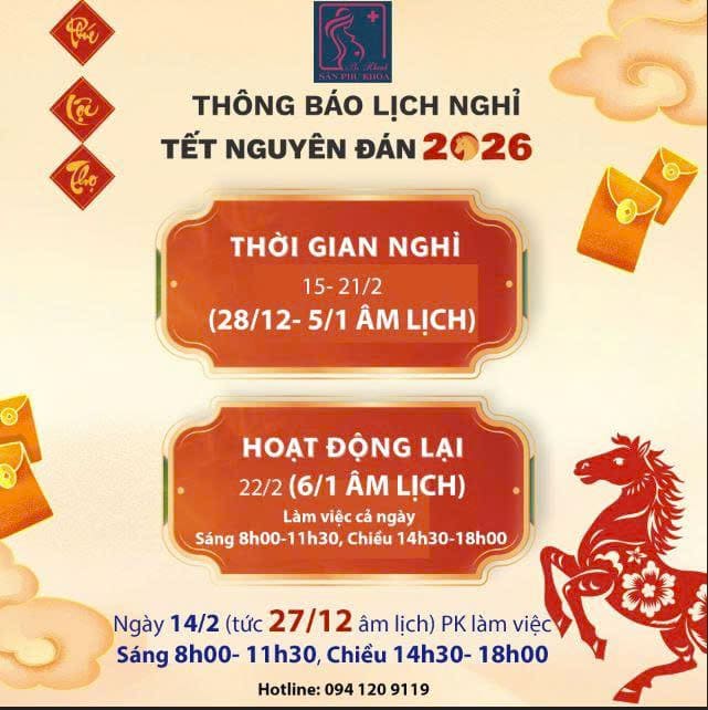 Phòng khám sản phụ khoa Bs Khanh trân trọng thông báo lịch nghỉ tết nguyên đán 2026