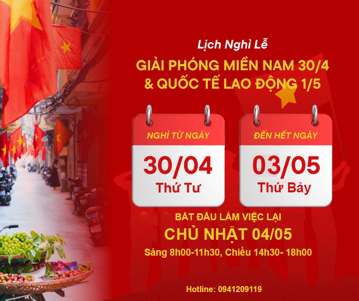 Phòng khám sản phụ khoa Bác sĩ Khanh trân trọng thông báo tới quý khách hàng, quý đối tác lịch nghỉ lễ dịp 30/4 - 1/5.