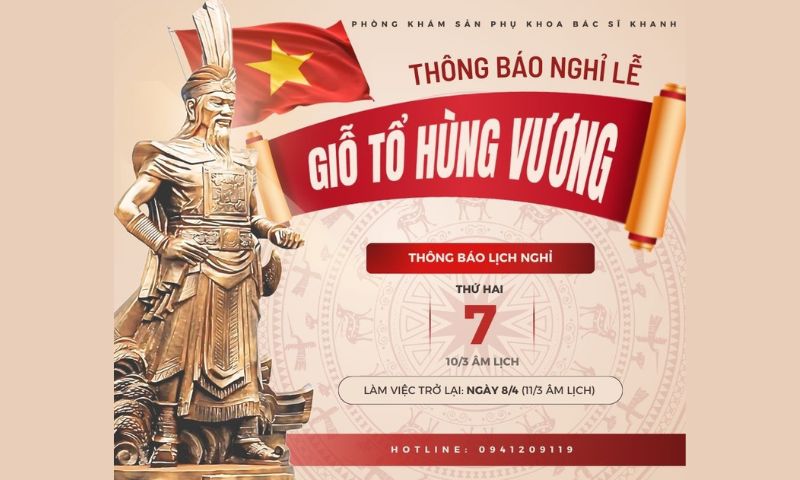 Phòng khám sản phụ khoa Bác sĩ Khanh trân trọng thông báo lịch nghỉ Lễ Giỗ tổ Hùng Vương như sau.