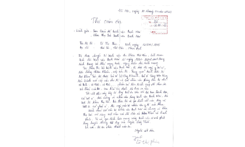 Bức thư tay của sản phụ được bác sĩ Vũ Công Khanh cấp cứu thành công - Lời cảm ơn, tri ân chân thành ấm áp.