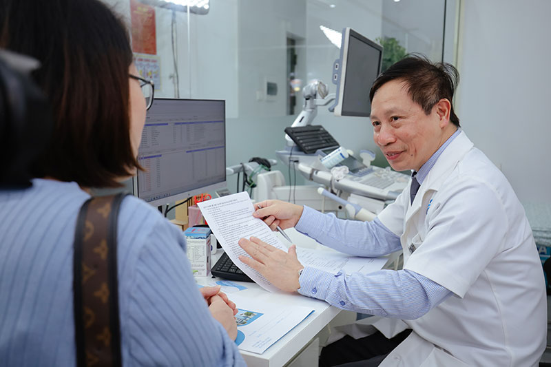 Hình ảnh: Bác sĩ tư vấn cho bệnh nhân khám thai tại PK Dr Khanh