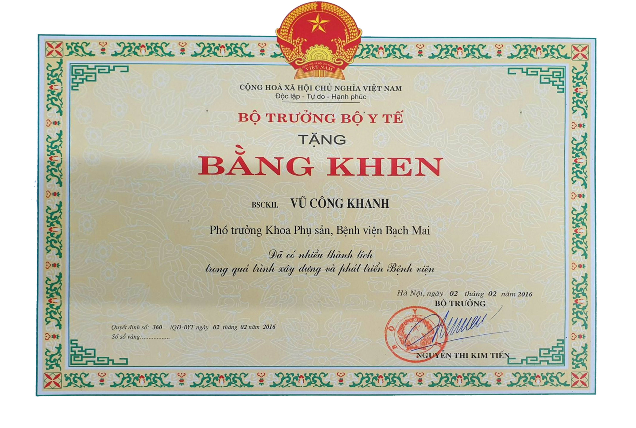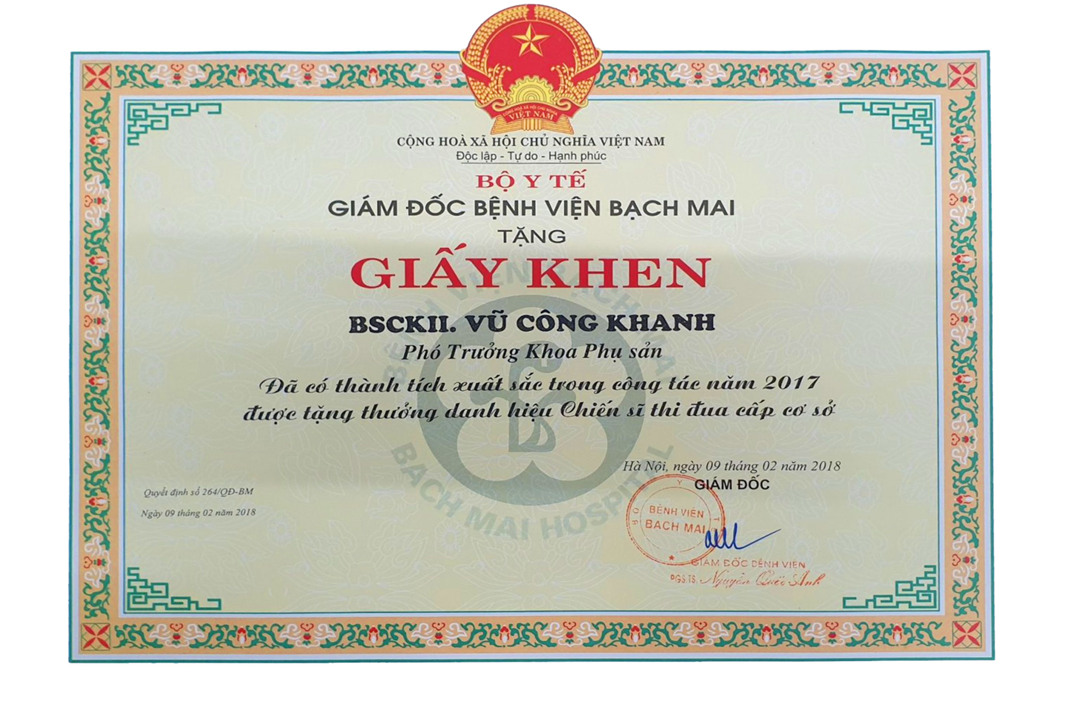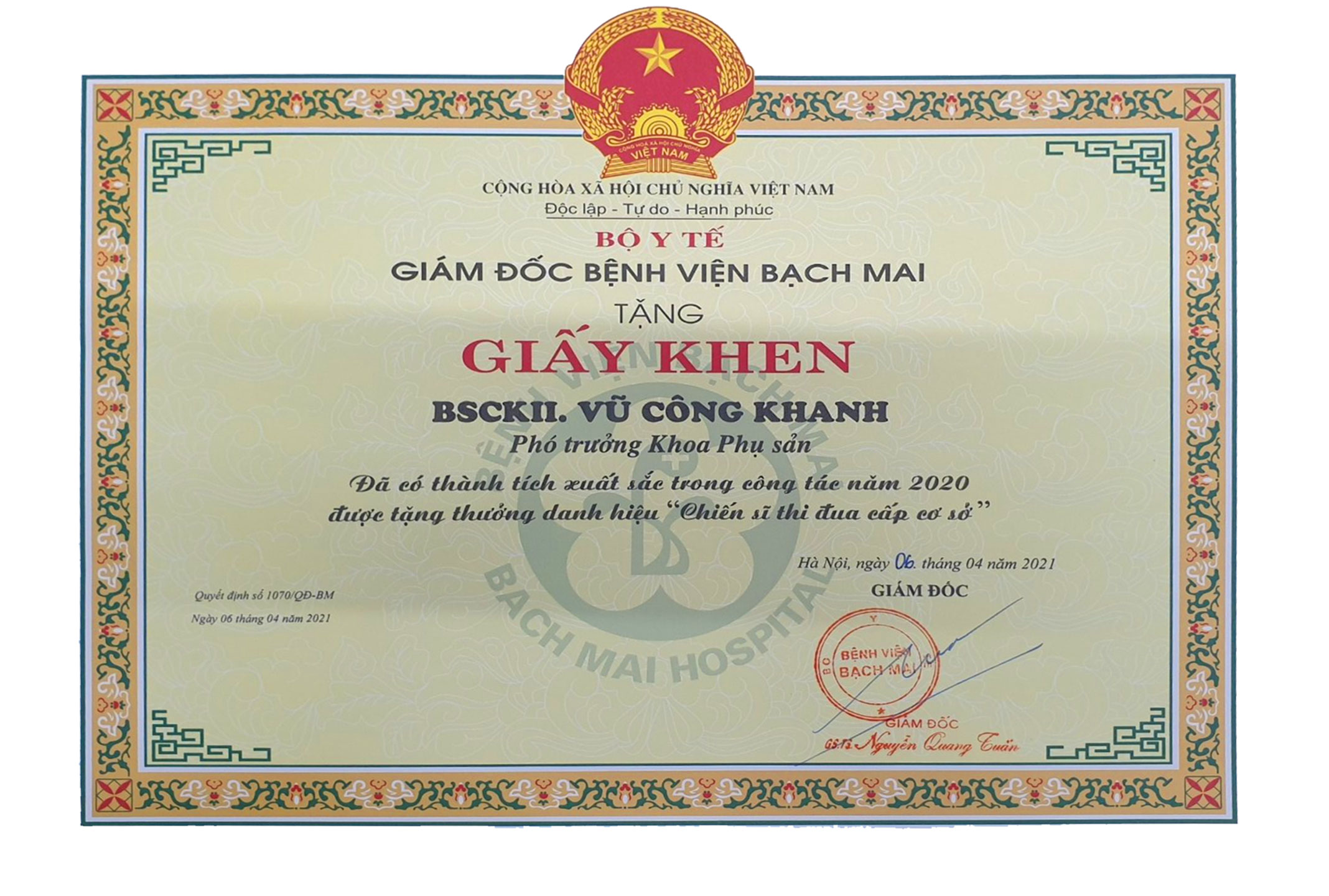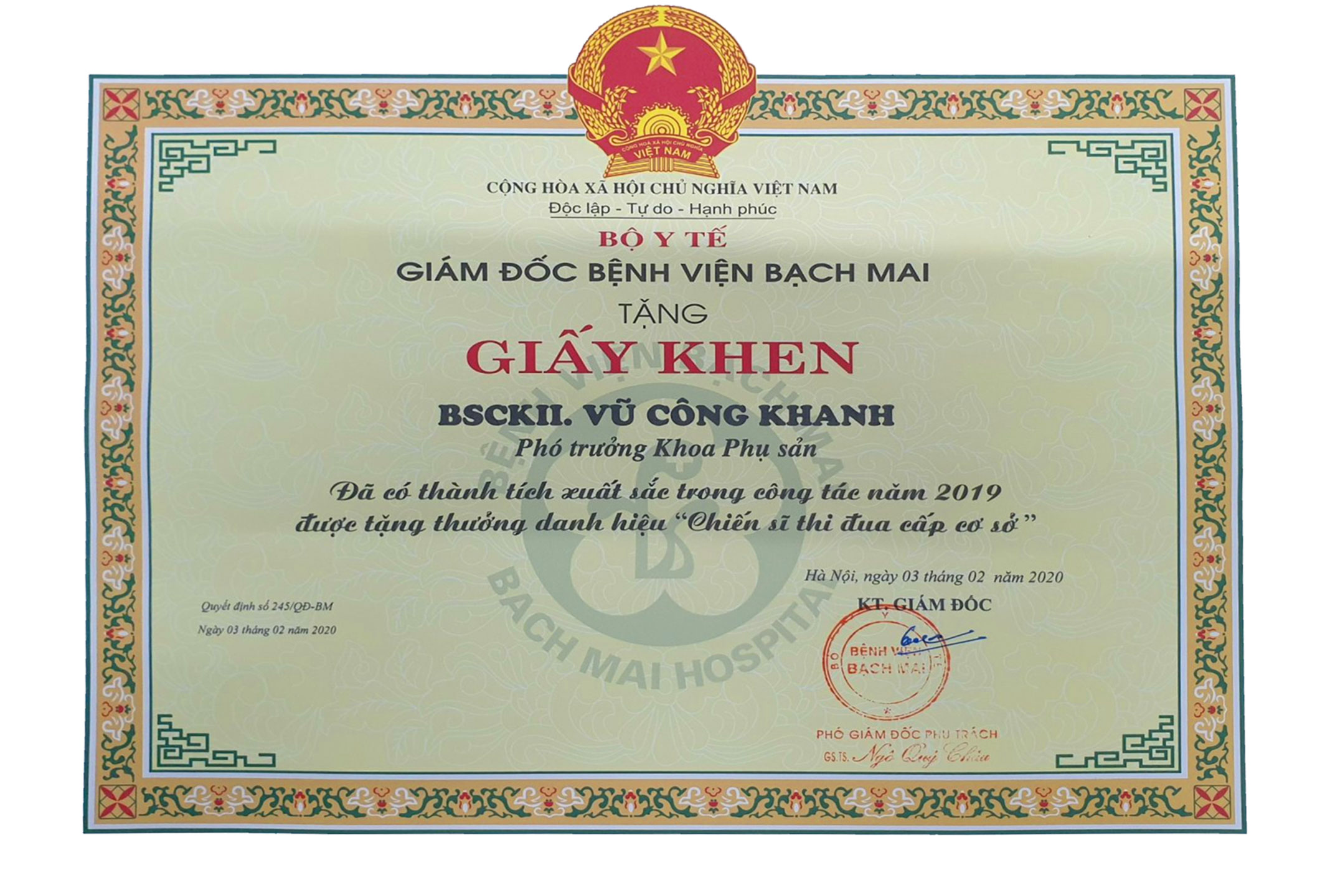 Bác sĩ Vũ Công Khanh đã gắn bó với chuyên ngành sản phụ khoa trên 30 năm với quan điểm riêng rất bình dị về nghề y "mỗi người thầy thuốc cần xem người bệnh như người nhà của mình, có như vậy mới phục vụ tốt được". Trong suốt quá trình lao động miệt mài đó, Bác sĩ Khanh luôn hoàn thành tốt công việc trên mọi vị trí công tác, được đồng nghiệp và người bệnh tin yêu, nhận được nhiều bằng khen và giấy khen, danh hiệu chiến sĩ thi đua trong nhiều năm liền. Bs Khanh đã chăm sóc sức khỏe cho hàng nghìn sản phụ, trực tiếp đỡ đẻ sinh thường hay đẻ khó, trực tiếp thực hiện nhiều ca mổ lấy thai hay các phẫu thuật phụ khoa, tham gia triển khai các kỹ thuật mới tại Bệnh viện và chia sẻ các kiến thức chuyên môn để bồi dưỡng đội ngũ cán bộ y tế trẻ trong các chương trình CME của bệnh viện.