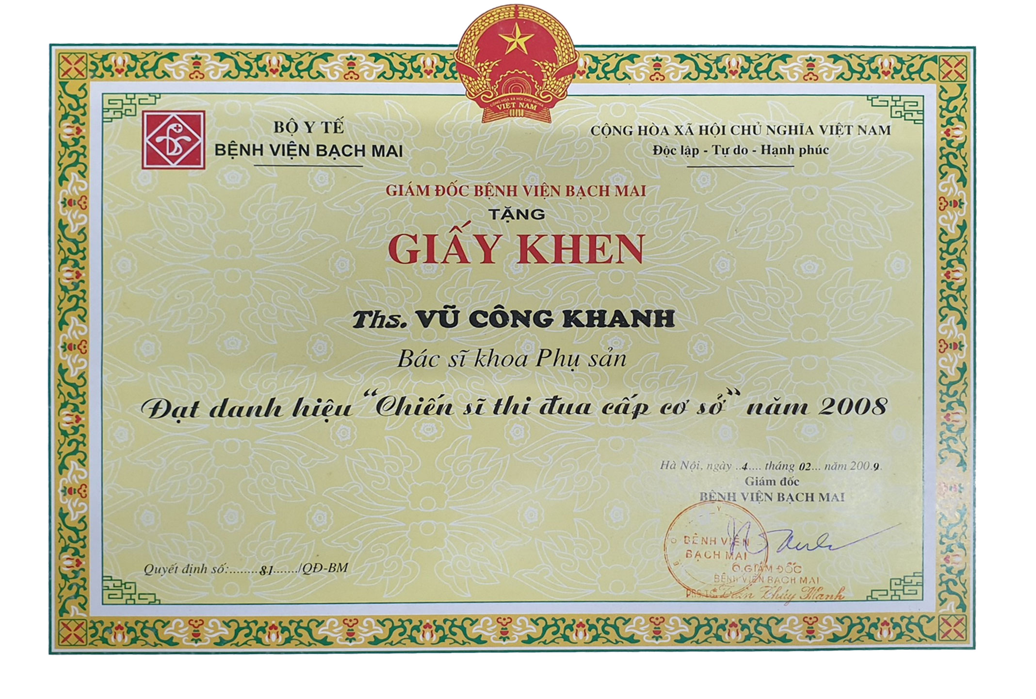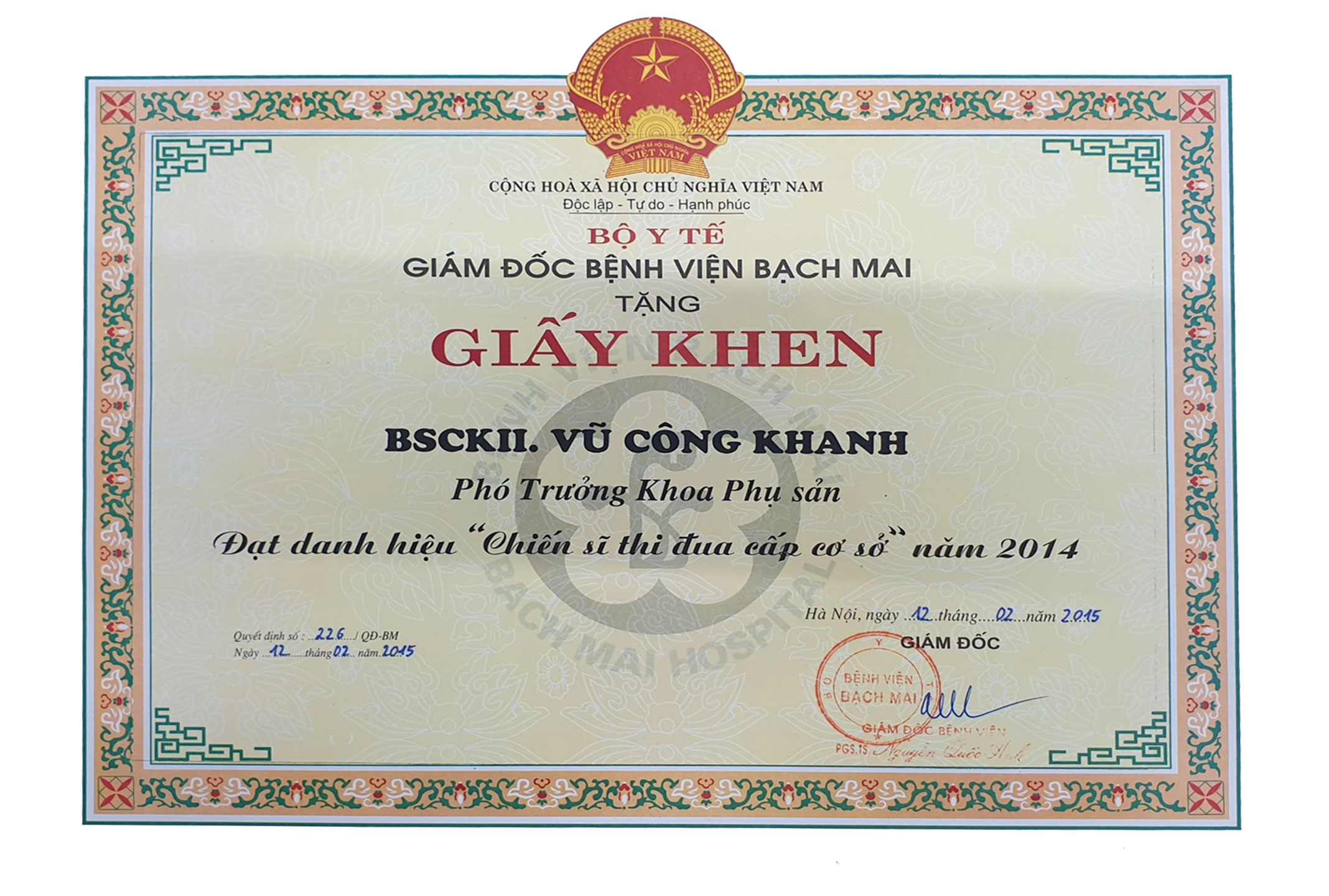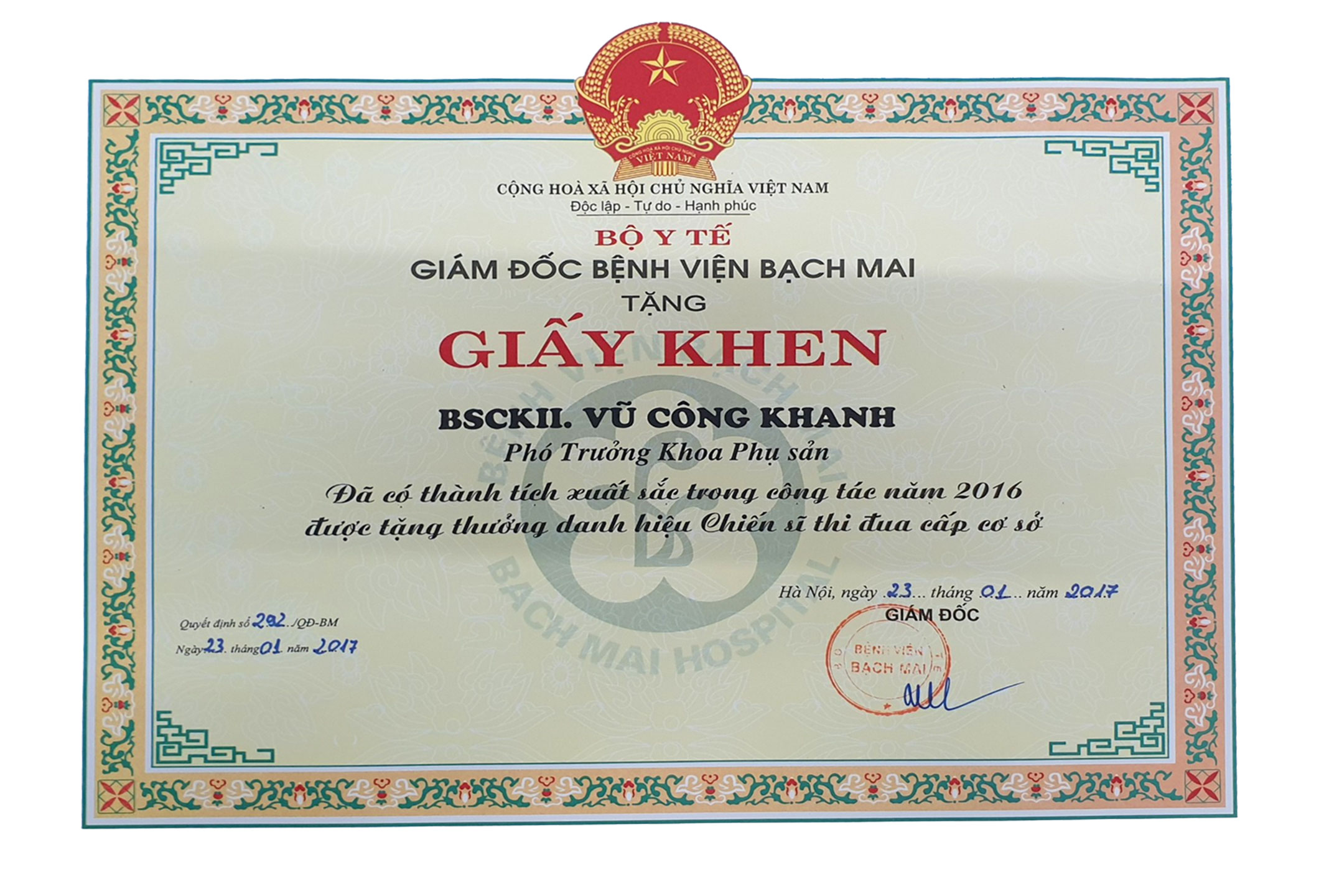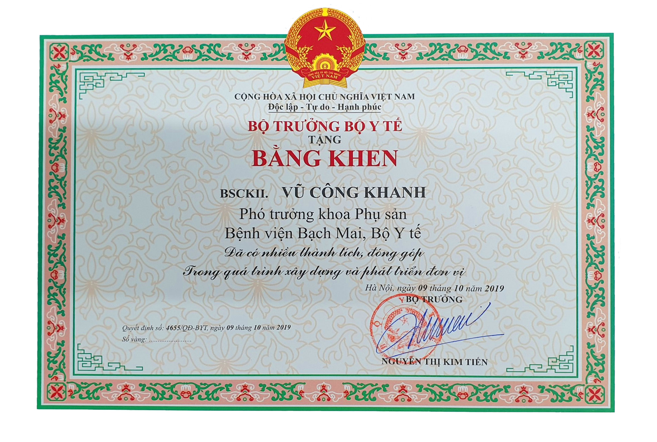 Bác sĩ Vũ Công Khanh đã gắn bó với chuyên ngành sản phụ khoa trên 30 năm với quan điểm riêng rất bình dị về nghề y "mỗi người thầy thuốc cần xem người bệnh như người nhà của mình, có như vậy mới phục vụ tốt được". Trong suốt quá trình lao động miệt mài đó, Bác sĩ Khanh luôn hoàn thành tốt công việc trên mọi vị trí công tác, được đồng nghiệp và người bệnh tin yêu, nhận được nhiều bằng khen và giấy khen, danh hiệu chiến sĩ thi đua trong nhiều năm liền. Bs Khanh đã chăm sóc sức khỏe cho hàng nghìn sản phụ, trực tiếp đỡ đẻ sinh thường hay đẻ khó, trực tiếp thực hiện nhiều ca mổ lấy thai hay các phẫu thuật phụ khoa, tham gia triển khai các kỹ thuật mới tại Bệnh viện và chia sẻ các kiến thức chuyên môn để bồi dưỡng đội ngũ cán bộ y tế trẻ trong các chương trình CME của bệnh viện.
